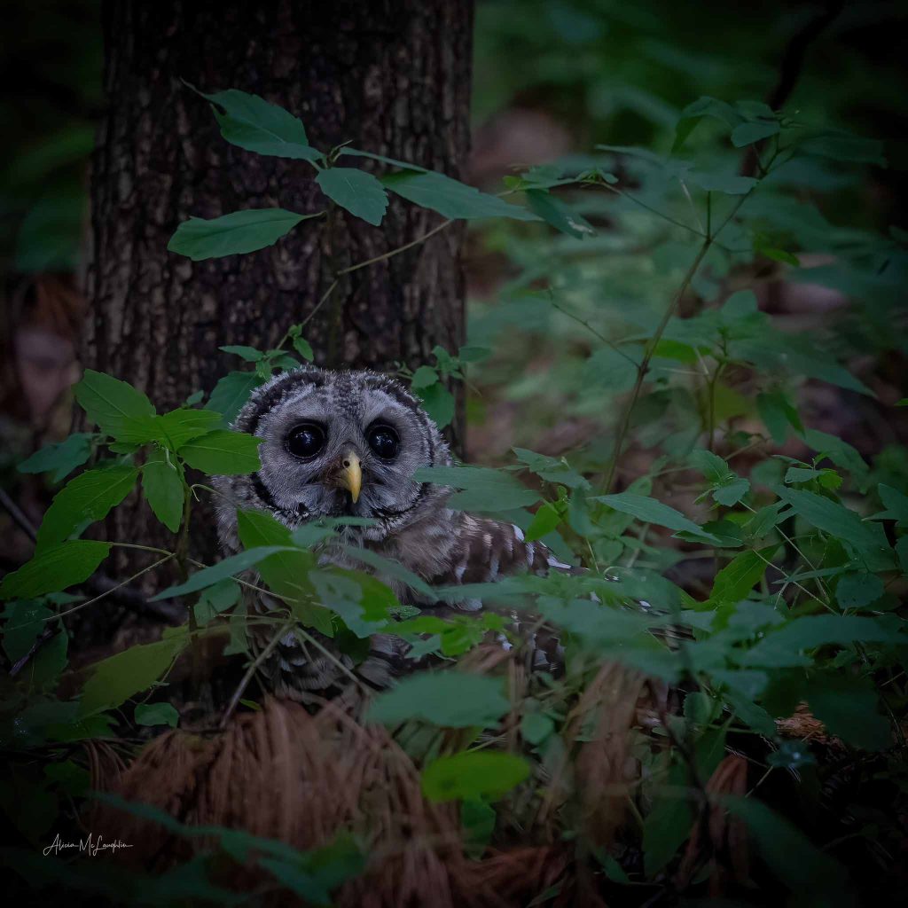 A Barred Owl watches from Alicia’s backyard. Photo by Alicia McLaughlin.