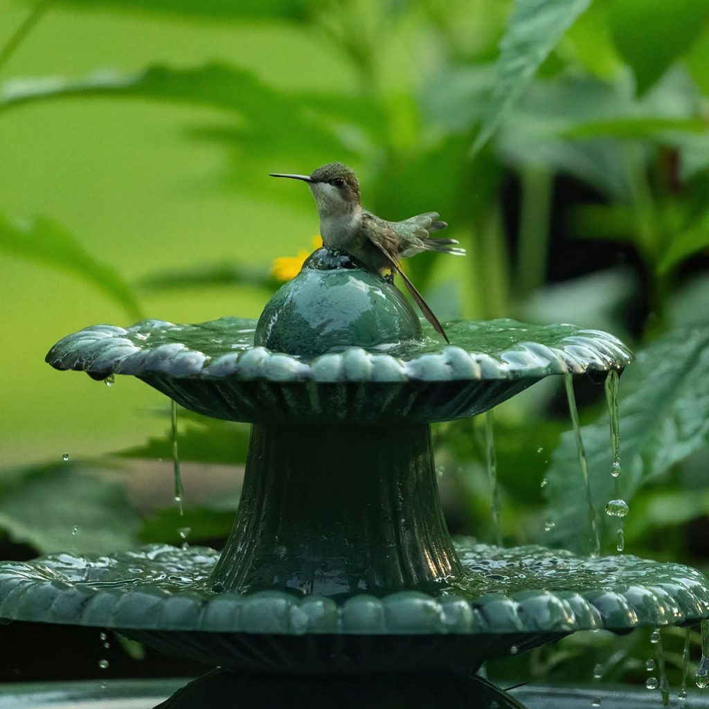 In the warmer months, I offer several bird baths, including two fountains that keep the birds and small wildlife hydrated. In winter, when natural water sources freeze, I provide two heated bird baths that are an essential lifeline to the birds that chose my yard as their safe haven. I’ve watched birds line up along the edge on freezing mornings, waiting their turn for a drink or quick bath.