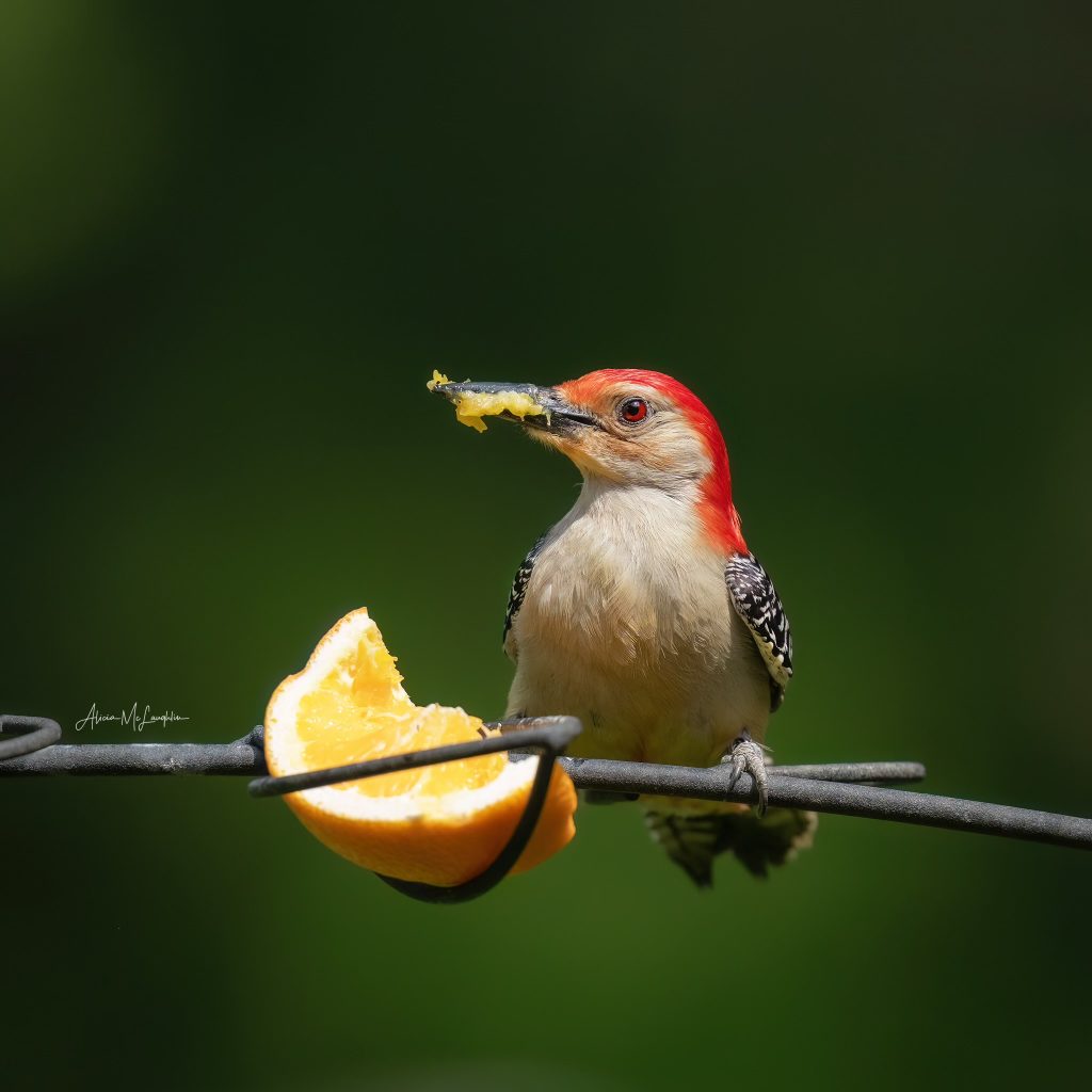 Red-bellied Woodpecker by Alicia McLaughlin at an orange feeder in the spring.